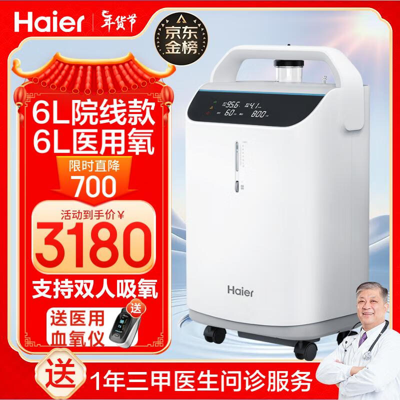 海尔(Haier)5L升/6升医用级制氧机雾化一体机老人孕妇家庭用吸氧机高原氧气机便携式随身小型氧疗仪器Z601W价格:3880.00元!