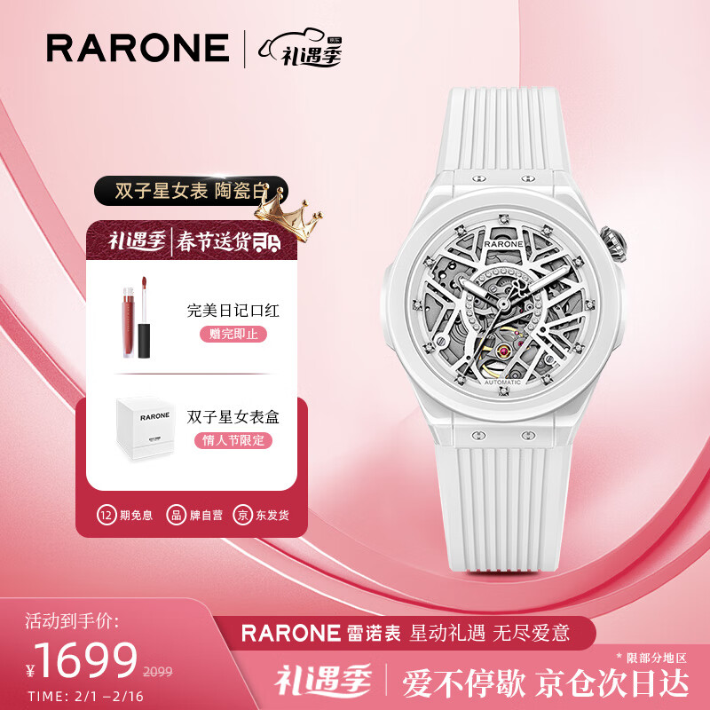 雷诺(RARONE)解构派双子星Q女士机械手表钢带腕表白陶瓷情人节礼物送女友价格:1969.00元!