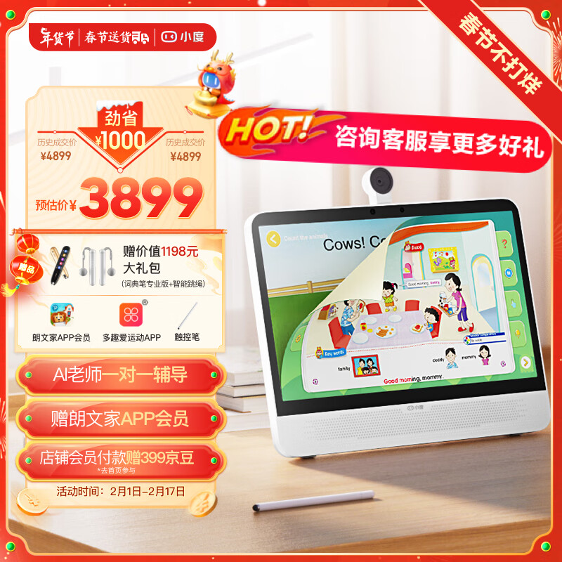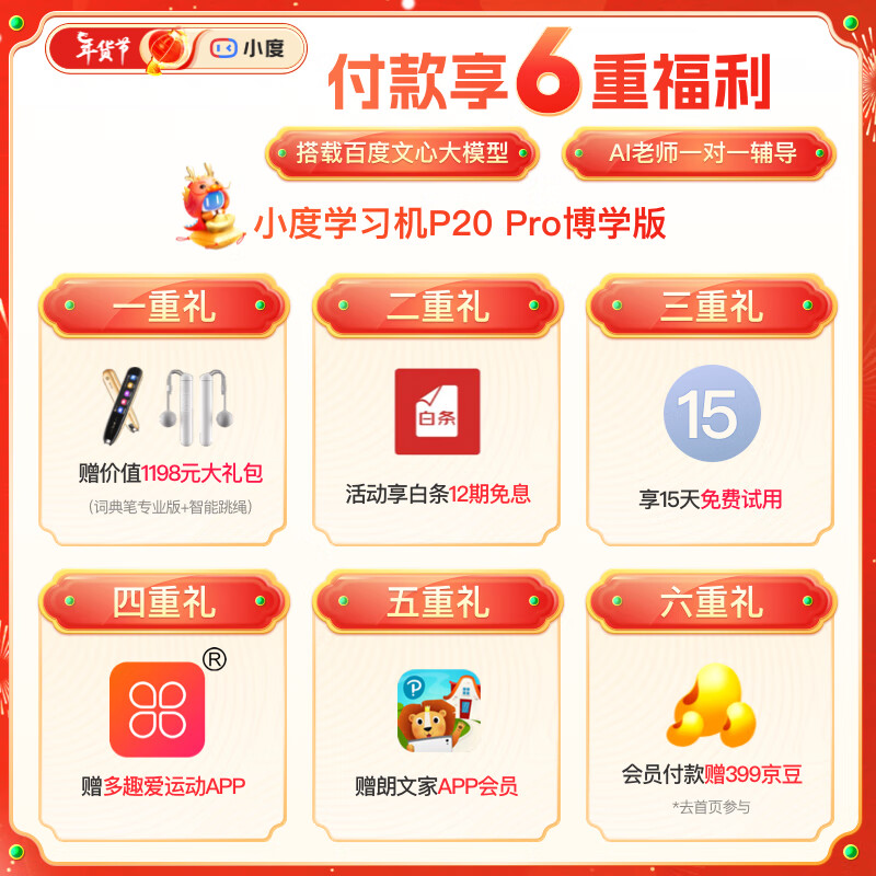 小度大屏学习机P20Pro博学版(6+128G)15.6英寸小学到高中学生平板电脑 百度文心大模型 AI精准学朗文家价格:3899.00元!