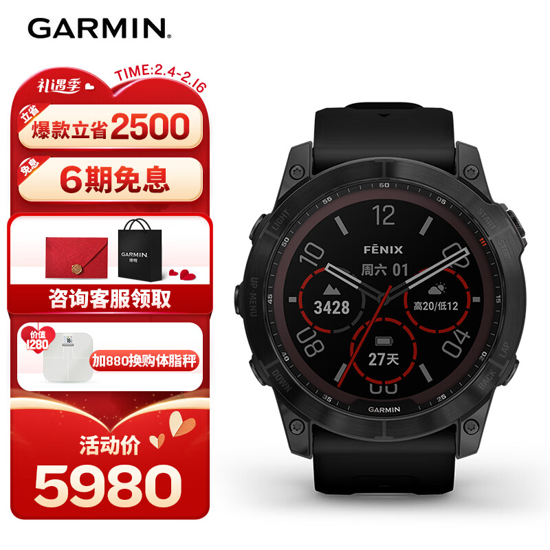 Fenix7X太阳能蓝宝石DLC碳黑旗舰版血氧跑步户外运动手表送礼物价格:5980.00元!