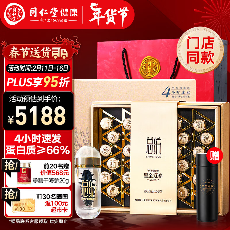 同仁堂(TRT)北京同仁堂大连速发海参辽参100g30只净制淡干海参干货高端礼盒价格:5188.00元!