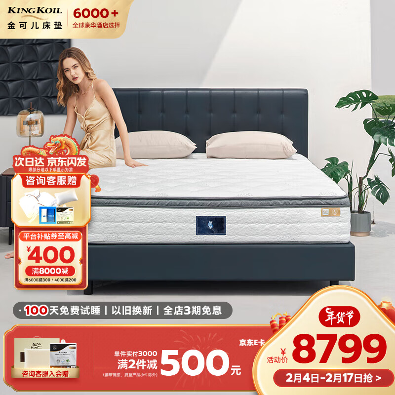 金可儿(Kingkoil)乳胶床垫五分区独立弹簧海绵床垫软硬适中繁星C+床垫1.8米*2米价格:8799.00元!