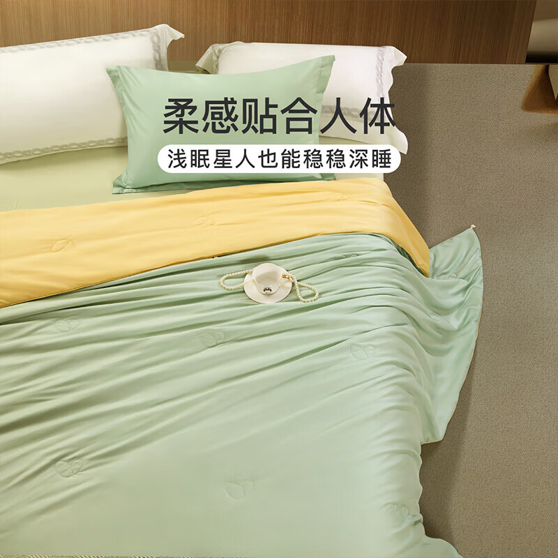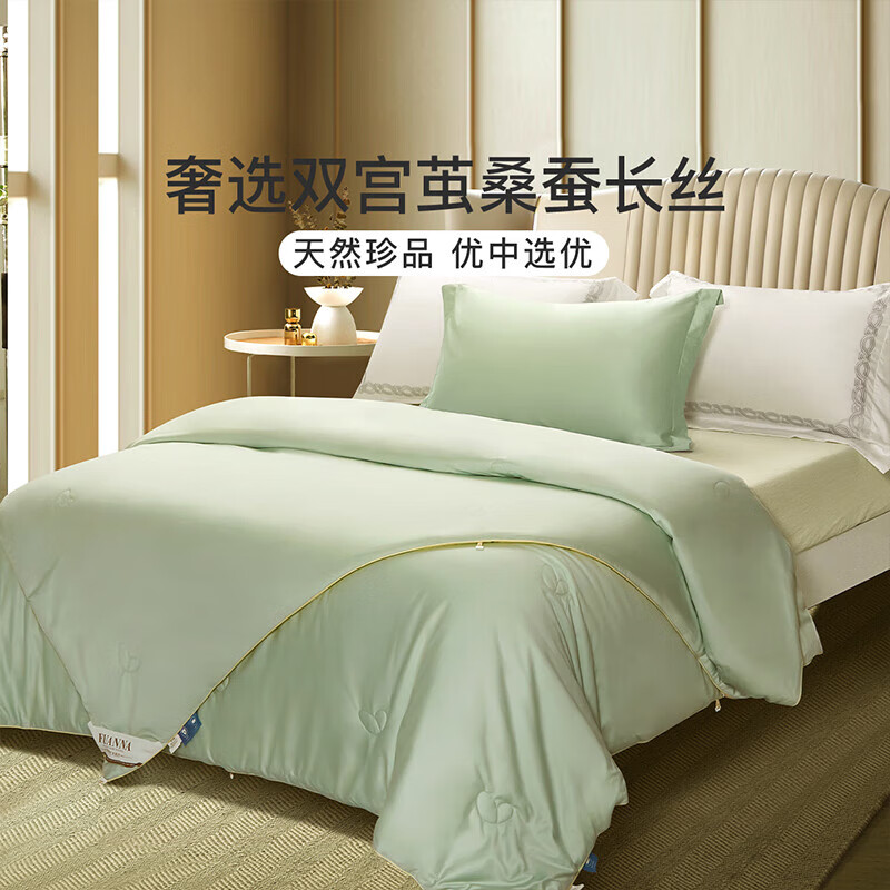 富安娜 沐晴雪 100%桑蚕丝双宫茧 冬被 8.5斤 230*229cm 绿+黄色价格:3599.00元!