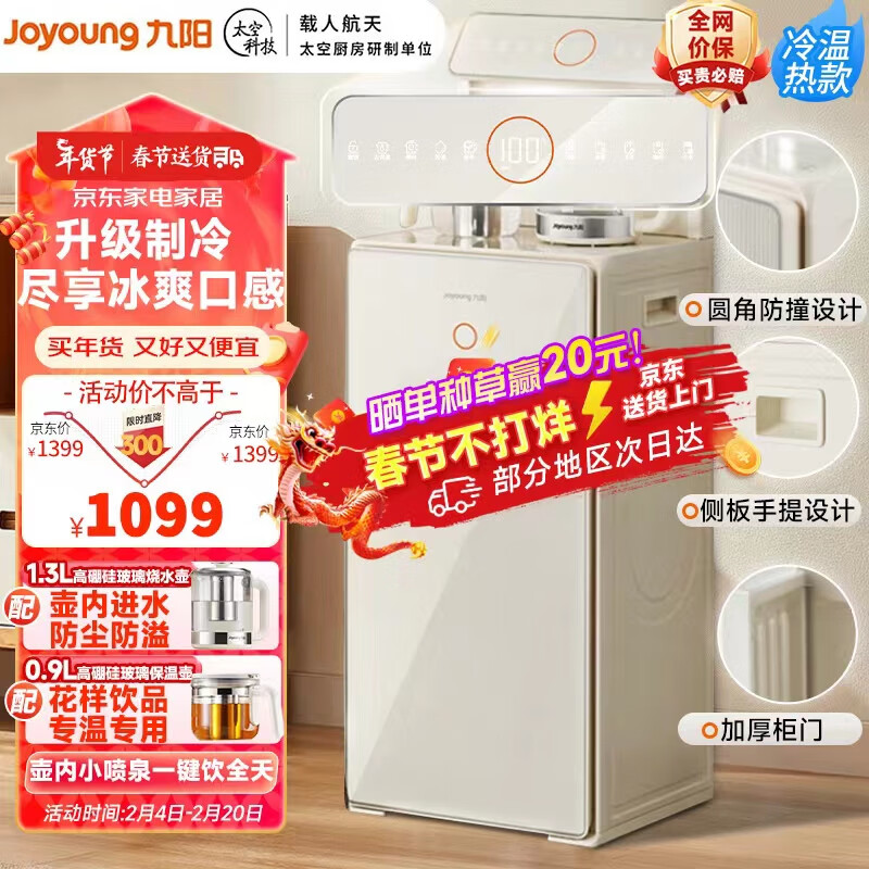 九阳(Joyoung)茶吧机 高端家用客厅多功能智能遥控全自动上水立式饮水机 2023新款茶吧机 奶油白 旗舰新品【全新升级壶内进水】冷温热款价格:1399.00元!