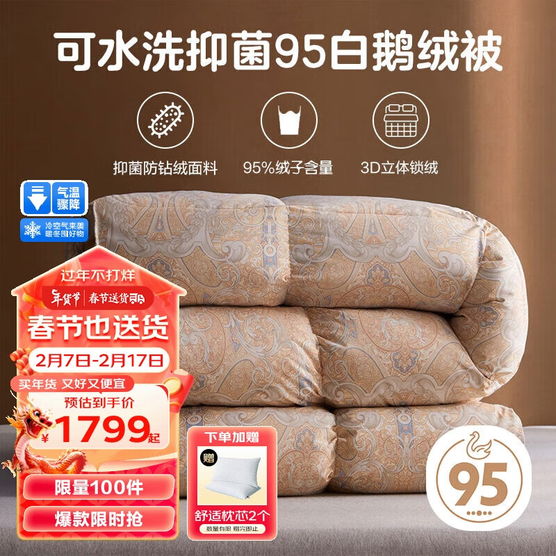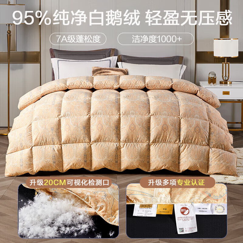 博洋家纺 奥莉亚 抑菌95%白鹅绒羽绒被 冬被(900g填充)200*230cm价格:2159.00元!