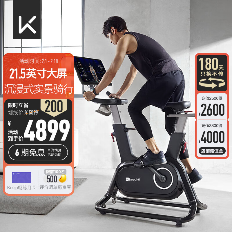 Keep动感单车C1 pro家用健身器智能调阻磁控室内脚踏自行车K0104A黑价格:4899.00元!