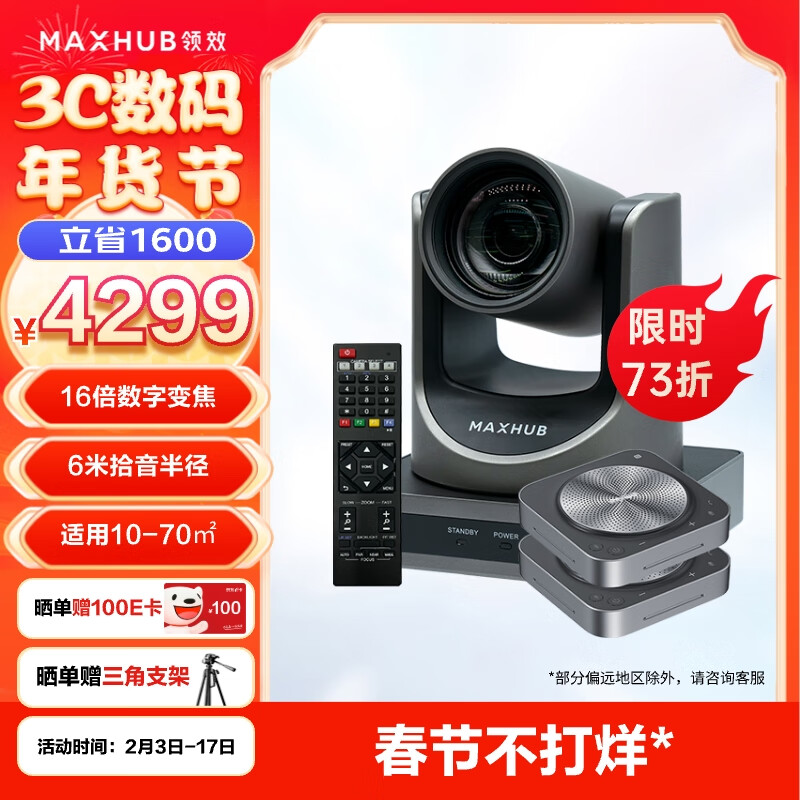 MAXHUB视频会议套装6米拾音半径全向麦克风BM31*2+1080P高清会议摄像头SC61A云台可旋转高清光学变焦价格:4299.00元!