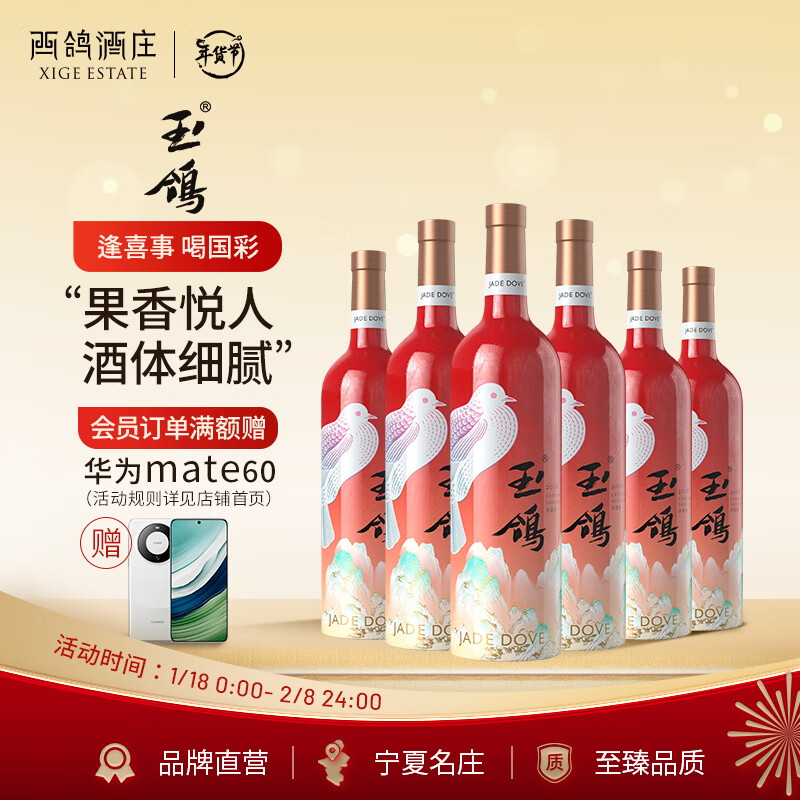 西鸽酒庄玉鸽国彩红国产干红葡萄酒750ml*6瓶整箱 宁夏贺兰山新年红酒年货价格:768.00元!