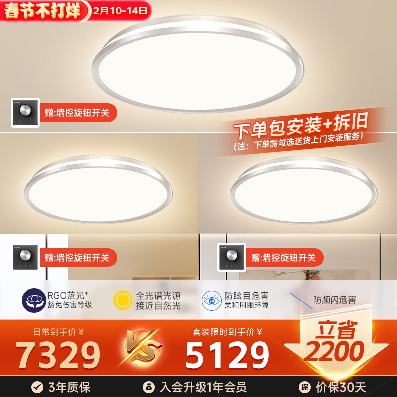 孩视宝【两室一厅套装】全光谱护眼吸顶灯卧室书房客厅灯儿童房灯AH37*3价格:7329.00元!