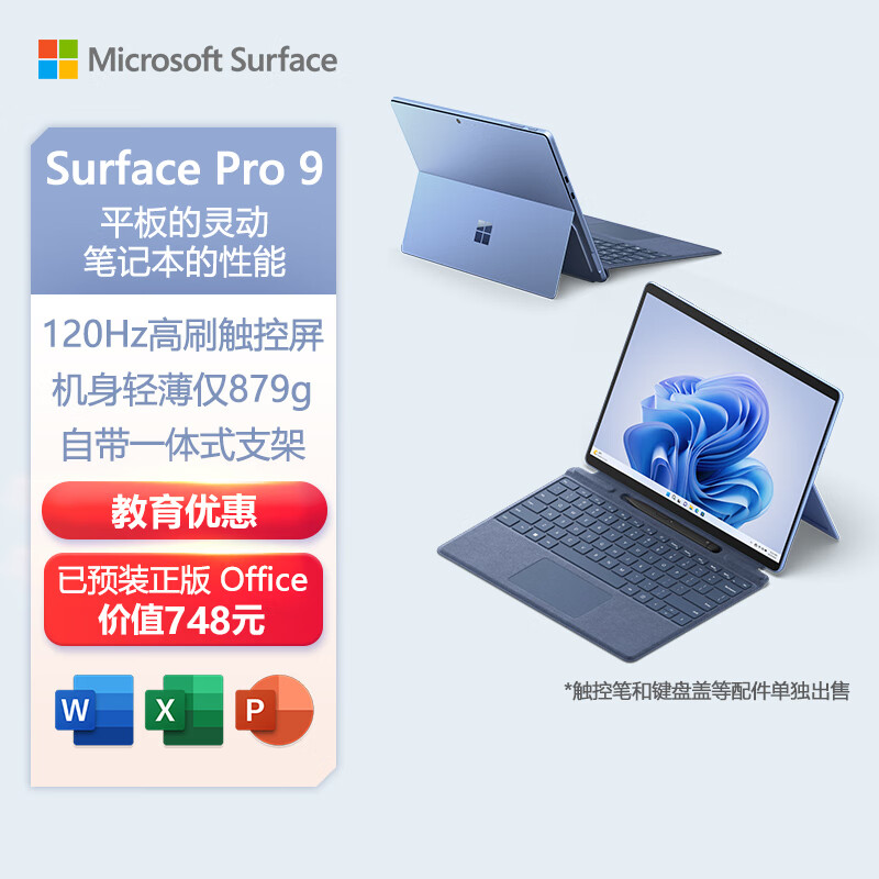 微软Surface Pro 9?二合一平板电脑i7 16G+256G 宝石蓝 13英寸触控屏幕Windows轻薄办公笔记本教育优惠价格:10788.00元!