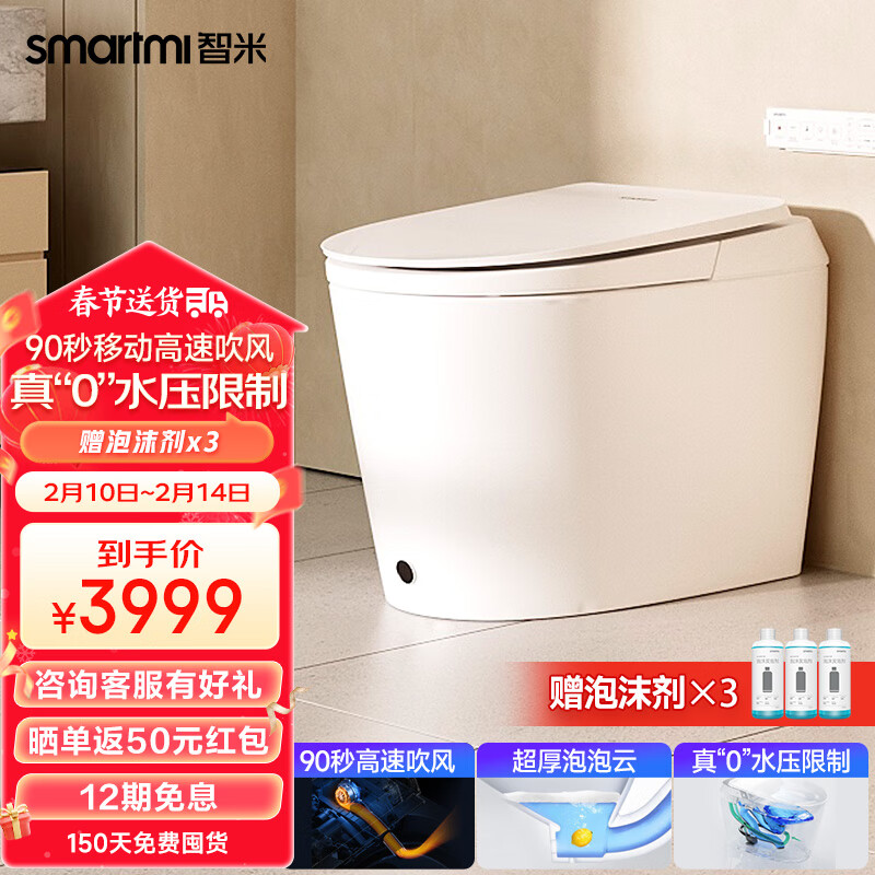 智米智能马桶泡沫盾无水压自动冲水智能坐便器2PRO ZNMTY08ZM-300坑距价格:3999.00元!