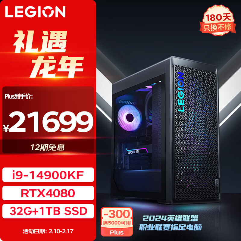 联想(Lenovo)拯救者刃9000K 2024游戏台式电脑主机(酷睿14代i9-14900KF RTX4080 16G显卡 32G DDR5 1TB SSD)价格:21999.00元!