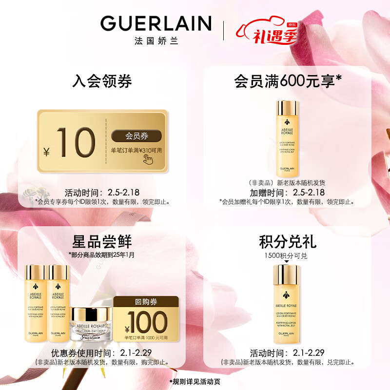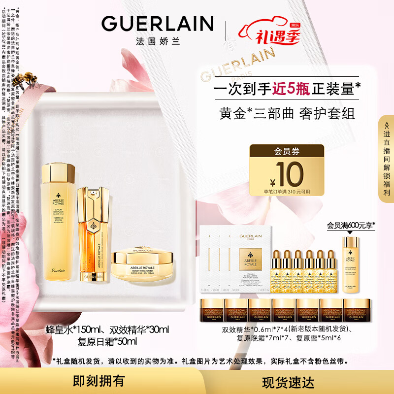娇兰(Guerlain)弹韧水润修护套装双效精华30ml+蜂皇水150ml+日霜50ml生日礼物价格:3640.00元!