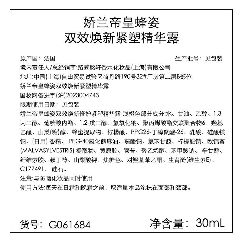 商品名称:娇兰双效30ml+水150ml+蜜护日霜50ml