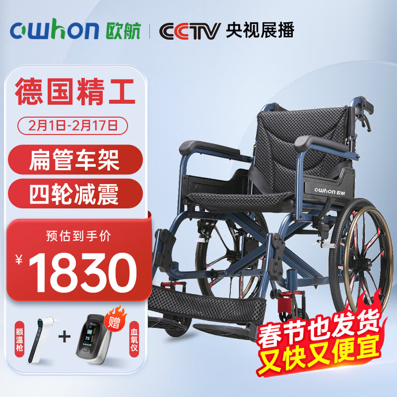 欧航轮椅老人轻便折叠小便携大轮老年人铝合金上飞机旅行残疾人减震手动四轮车价格:2030.00元!