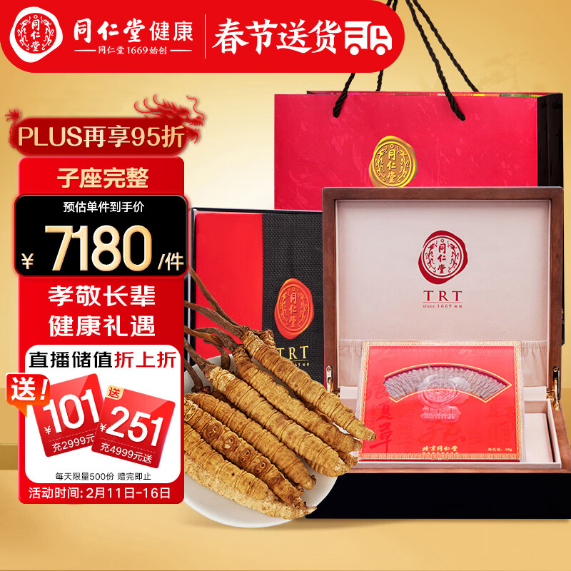 北京同仁堂【年货礼品】冬虫夏草-24/12g 虫草礼盒 虫体饱满 洁净度高 可泡酒磨粉 滋补品L送父母长辈送礼价格:7180.00元!