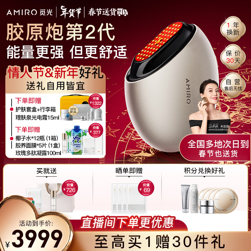 AMIRO觅光胶原炮第二代美容仪S2标准版 家用脸面中部提拉紧致淡纹按摩 48极射频仪器 新年情人节生日礼物 送女生价格:5999.00元!