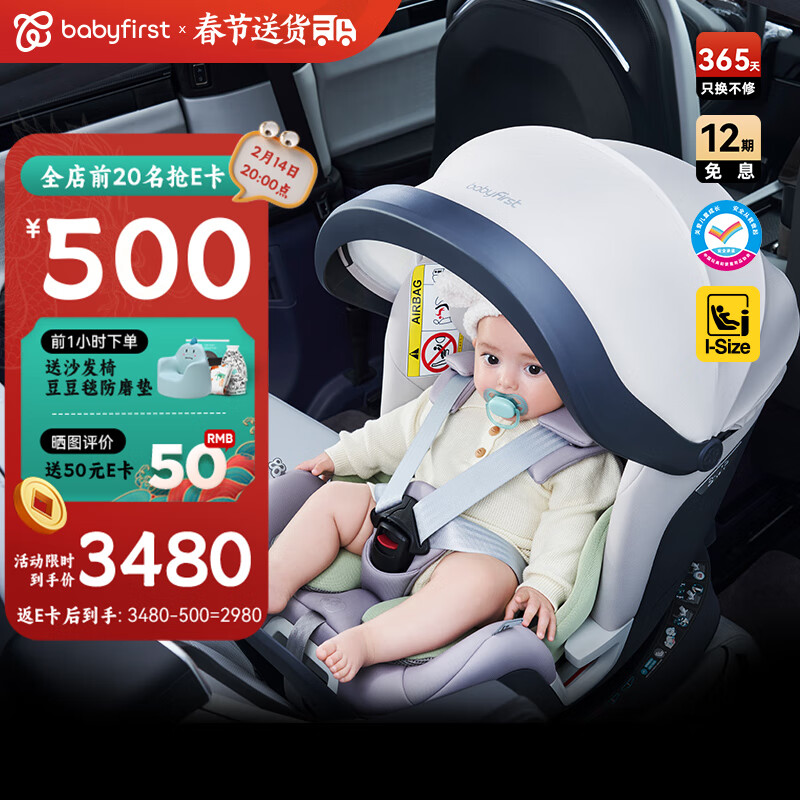宝贝(Babyfirst)灵悦Pro婴儿童座椅汽车用约0-4-7岁宝宝车载可躺 椰奶白R155A价格:3980.00元!