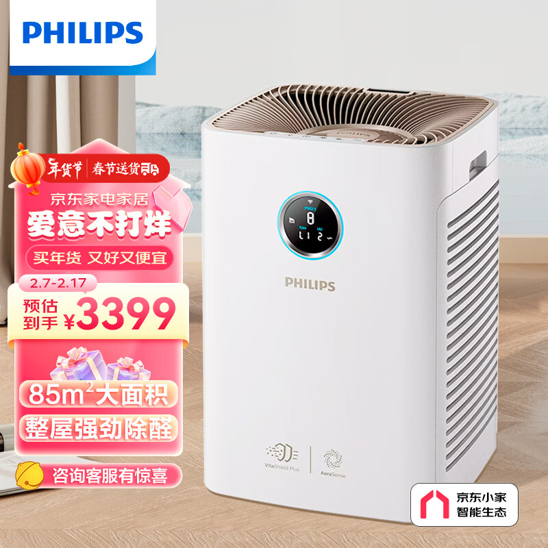 飞利浦(PHILIPS)空气净化器 除甲醛分解 除细菌除异味除过敏原 家用大空间 京东小家智能生态 AC6678/00价格:3699.00元!