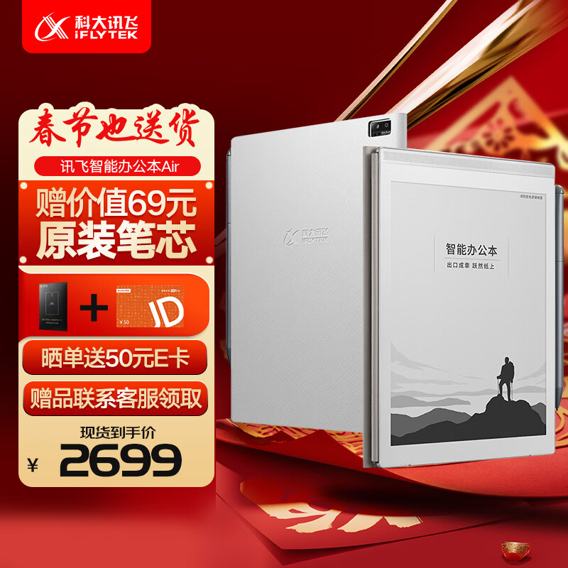 科大讯飞智能办公本Air 7.8英寸电子书阅读器 墨水屏电纸书 电子笔记本 语音转文字 冷月银+浅灰保护套价格:2799.00元!