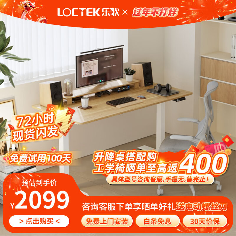 乐歌电动升降桌电脑桌站立办公双电机家用写字书桌 E3/1.6m原木色套装价格:2309.00元!