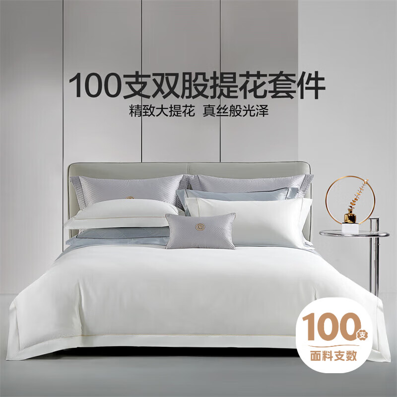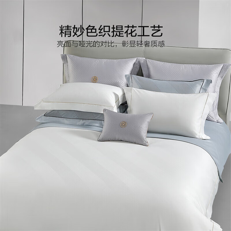 水星家纺100支长绒棉四件套纯棉被套床单四件套床上用品全棉被罩1.8温玉价格:2599.00元!