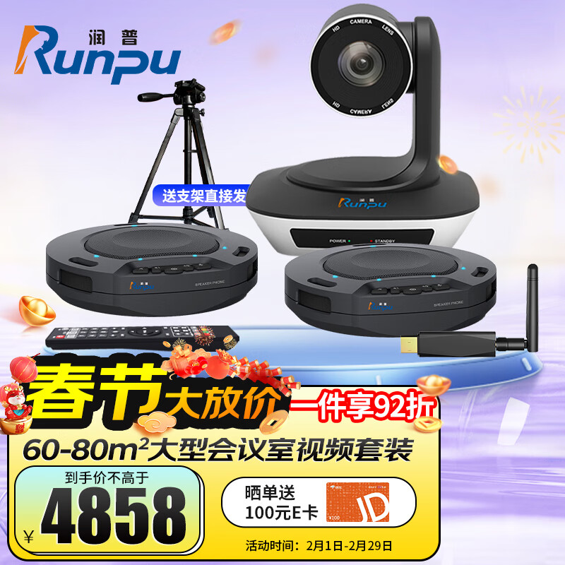 润普Runpu大型视频会议解决方案适用60-80㎡会议摄像头教育录播摄像机无线级联全向麦克风系统RP-W50价格:5280.00元!