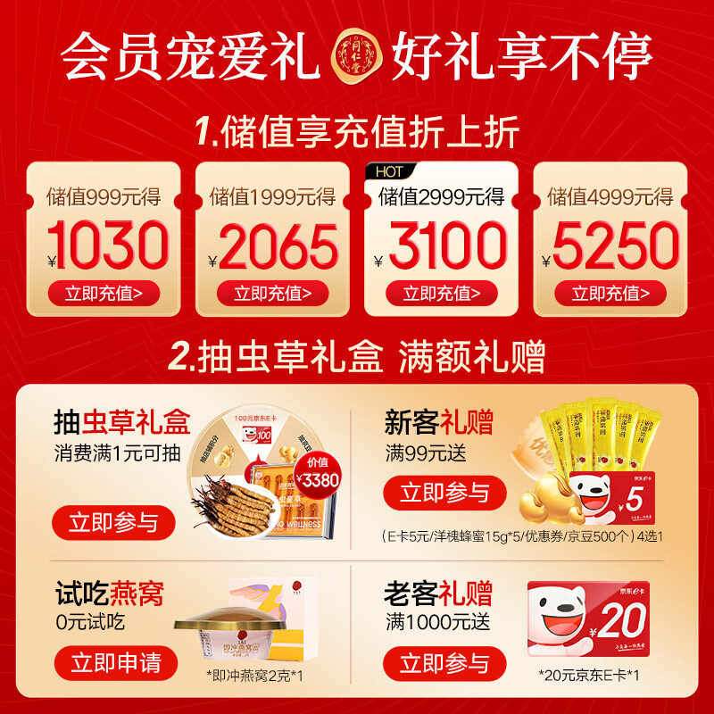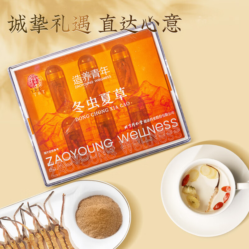 北京同仁堂【年货礼品】冬虫夏草-50/6g礼盒装 虫体饱满 洁净度高 可磨粉泡酒 滋补品送父母长辈送礼价格:2258.00元!