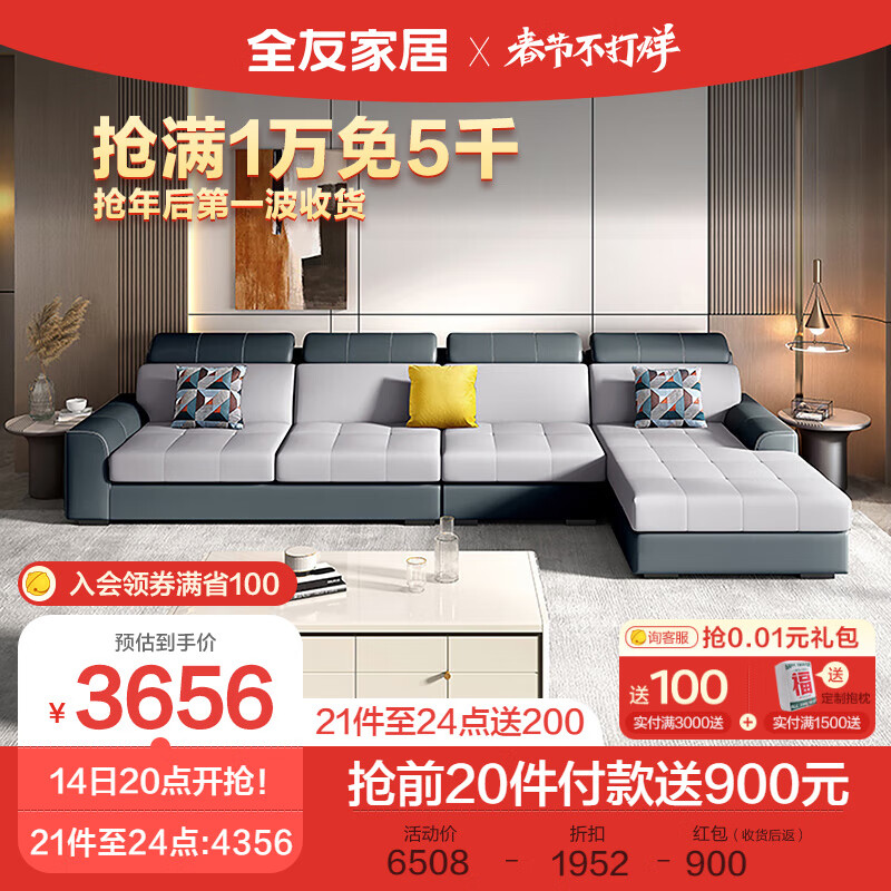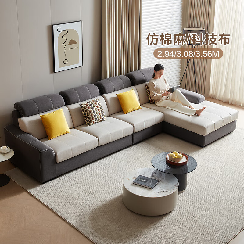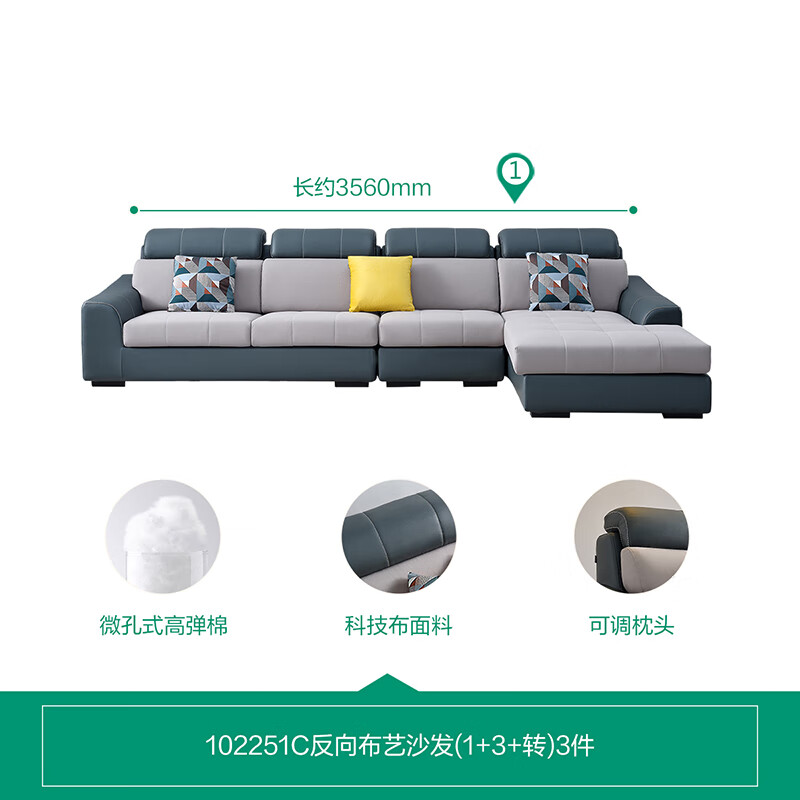 全友家居 现代简约科技布沙发小户型客厅家具整装可拆洗布沙发102251C价格:6508.57元!