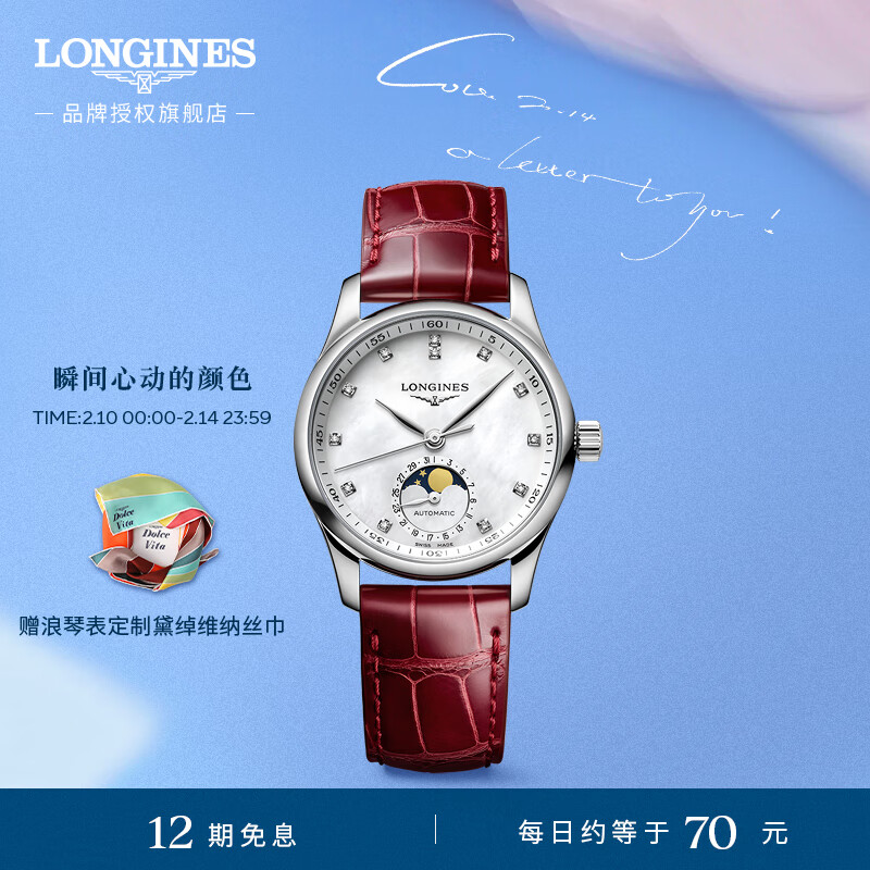 浪琴(LONGINES)赵丽颖推荐 瑞士手表 名匠系列 月相女表 新年礼物 L24094872价格:25300.00元!