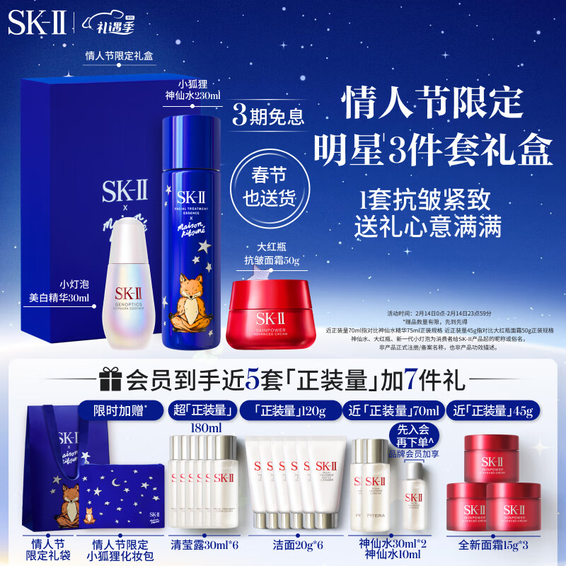 SK-II小狐狸神仙水230ml蓝+全新面霜50g+小灯泡30ml护肤套装情人节礼物价格:3950.00元!