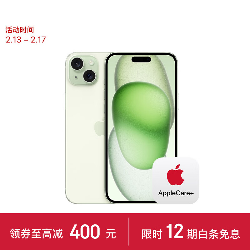Apple/苹果 【一年AC+套装版】 iPhone 15 Plus (A3096) 512GB 绿色 支持移动联通电信5G 双卡双待手机价格:9998.00元!
