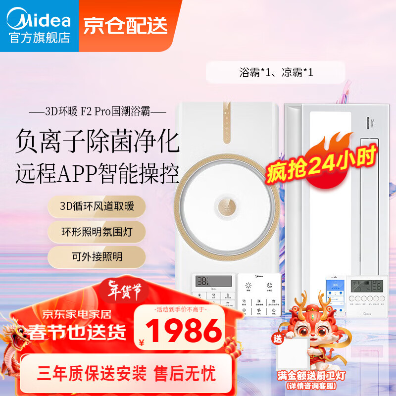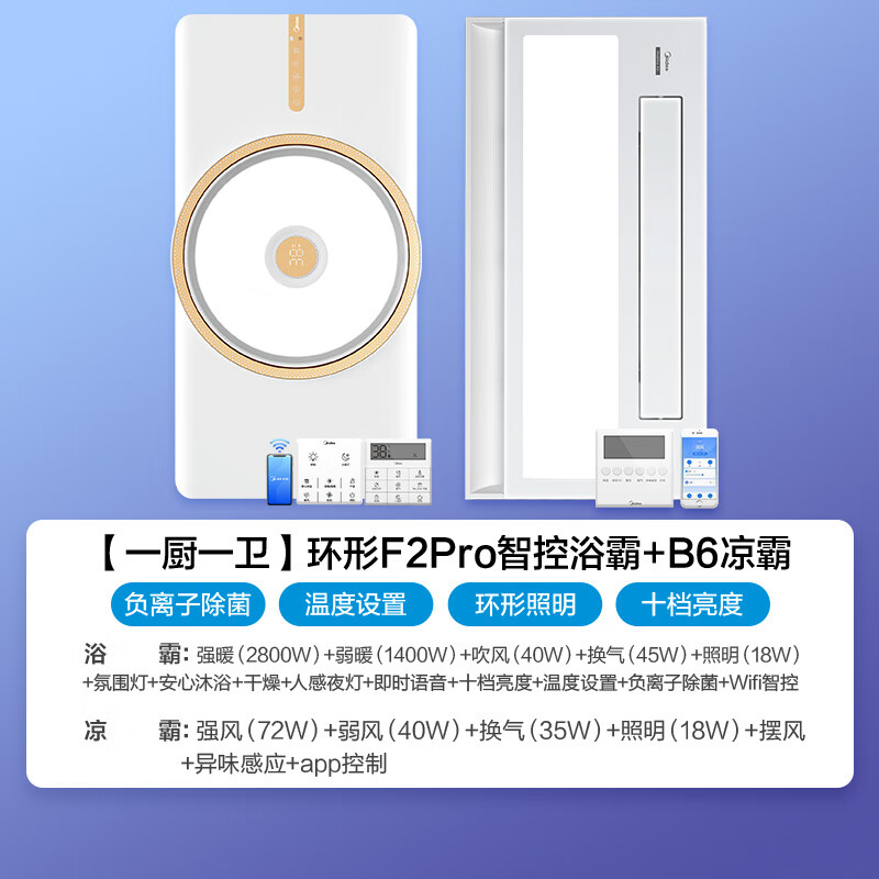 美的(Midea)风暖环形浴霸智能浴室暖风照明排气一体取暖器卫生间集成吊顶双核价格:1986.00元!