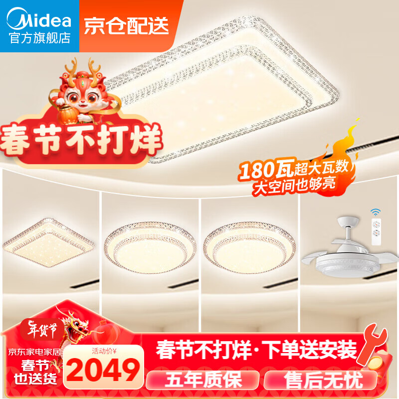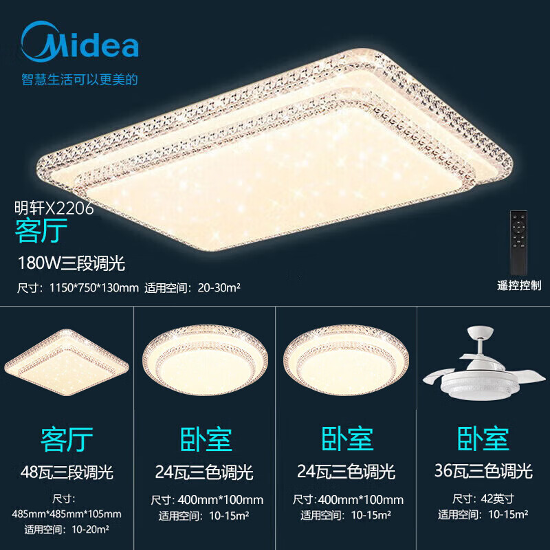 美的(Midea)LED照明吸顶灯超大瓦数客厅大灯水晶灯餐厅卧室全屋三室两厅套餐价格:2049.00元!