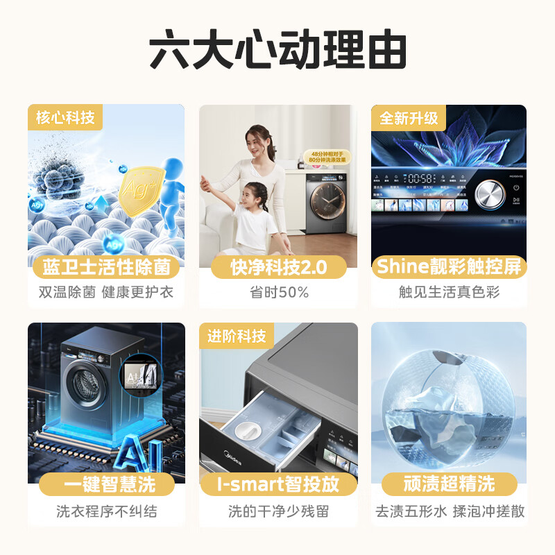美的(Midea)滚筒洗衣机全自动 快净系列 V5S 智能投放 洗衣机超薄款 触控彩屏 1.1洗净比 除菌10公斤 MG100V5S价格:4099.00元!