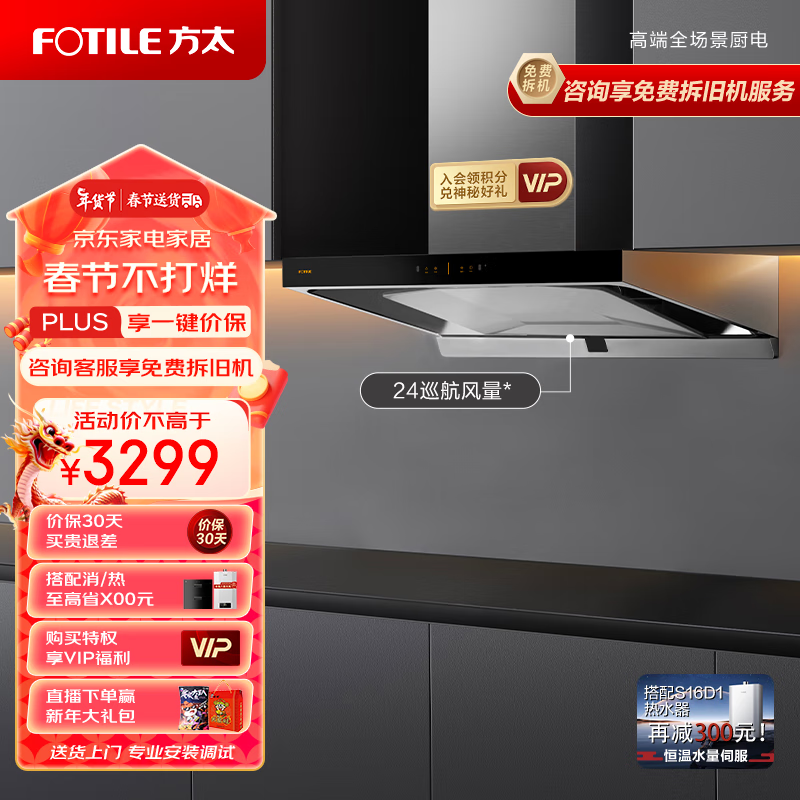 方太家用欧式顶吸抽油烟机 24巡航风量超大吸力 直流变频 挥手智控 智能巡航EMQ6T价格:3299.00元!