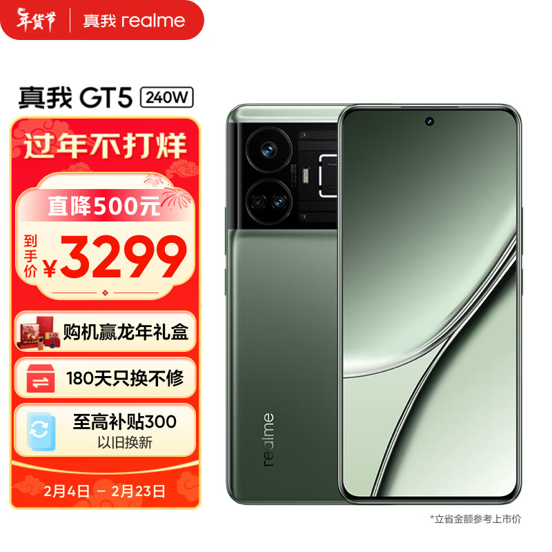 realme真我GT5 240W 第二代骁龙8 5G旗舰芯 240W满级秒充 144Hz电竞直屏 24GB+1TB 星雾绿洲 5G手机价格:3299.00元!