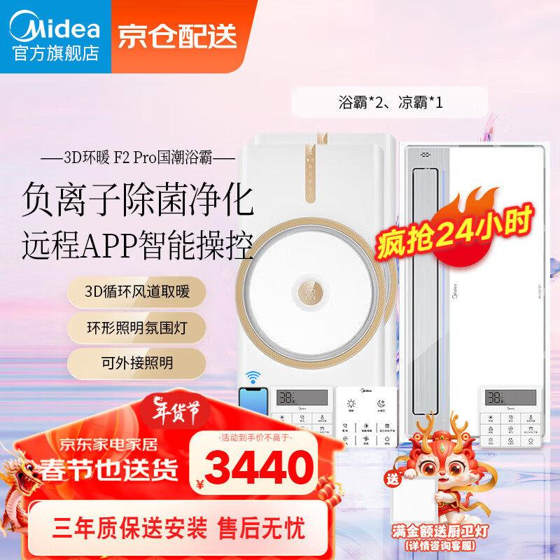 美的(Midea)风暖环形浴霸智能浴室除菌暖风照明排气一体取暖器卫生间集成吊顶价格:3440.00元!