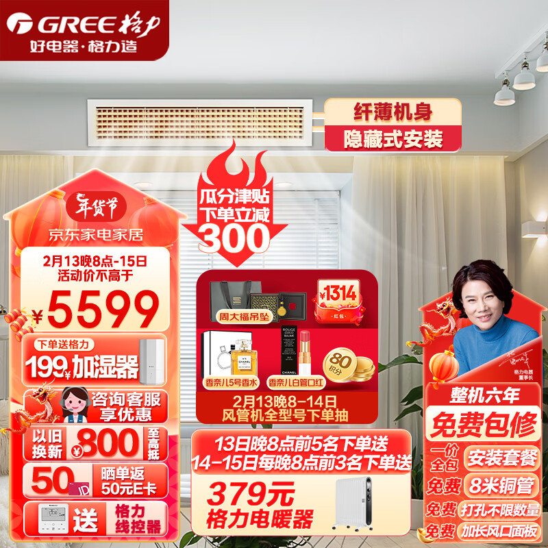 格力(GREE)中央空调 风管机一拖一 大1匹家用嵌入式空调 直流变频FGR2.6Pd/C3Nh-N2 京仓派送(一价全包)价格:5599.00元!
