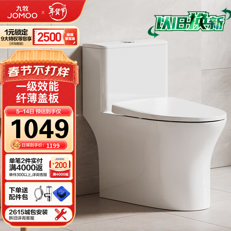 九牧(JOMOO)11457-2-1/41K-1双旋暴风抗菌釉面马桶一级水效家用坐便器缓降价格:1149.00元!