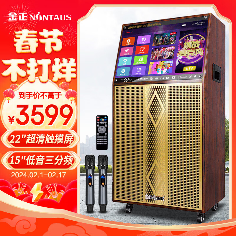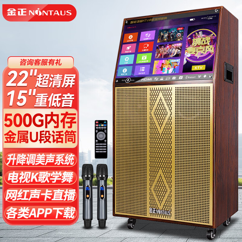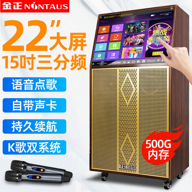 金正 H20 22英寸户外广场舞音响带显示屏三分频家用k歌蓝牙移动ktv音箱大功率触屏视频机点歌机 带话筒价格:3599.00元!