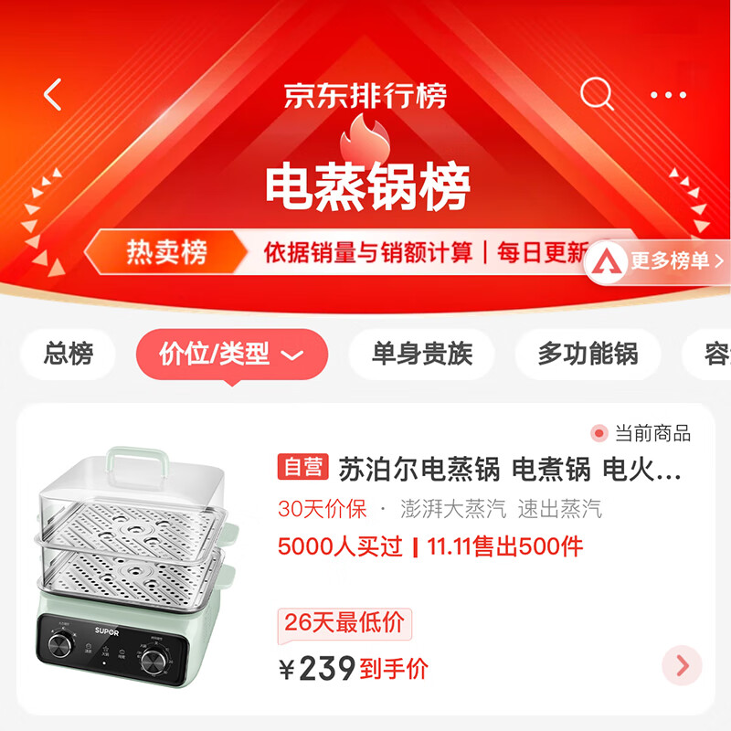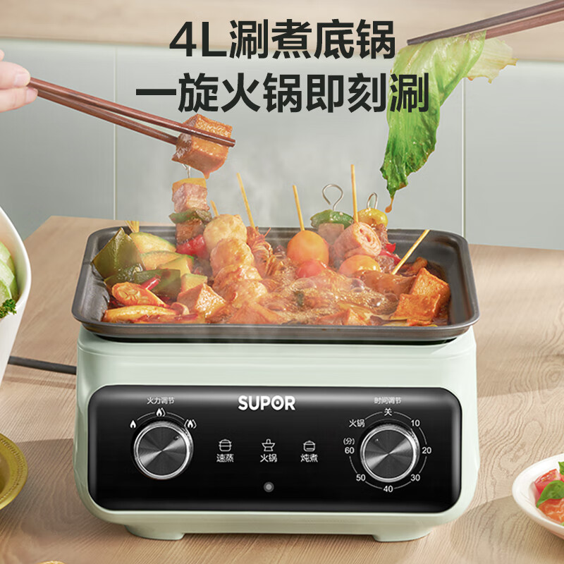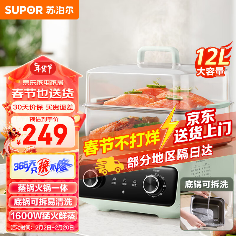 苏泊尔电蒸锅 电煮锅 电火锅蒸煮一体多功能锅家用蒸包子锅可拆洗电热锅12L大容量双层蒸笼 ZN26FK837价格:249.00元!