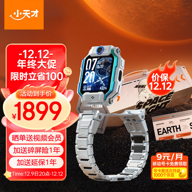 小天才儿童电话手表Z9航天指定款礼盒 体温监测智能手表 学生儿童4G视频拍照双摄定位手表手机男女孩月岩灰价格:1899.00元!