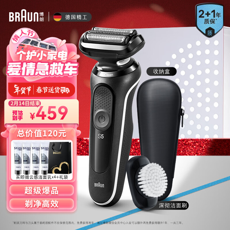 博朗(BRAUN)高效5系电动剃须刀礼盒款往复式刮胡刀礼盒男士男朋友生日礼物送男友送老公情人节礼物送男友价格:459.00元!