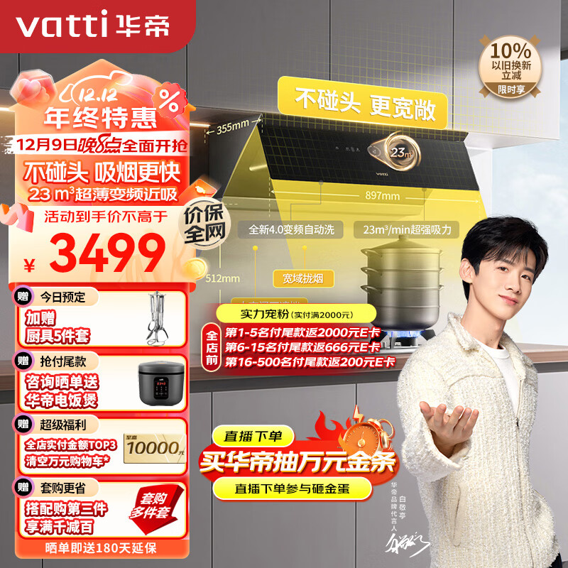 华帝(VATTI)抽油烟机家用超薄侧吸变频大吸力烟机燃气灶具烟灶套装23风量自动清洗空间大师i111A2·SE天然气价格:3498.00元!