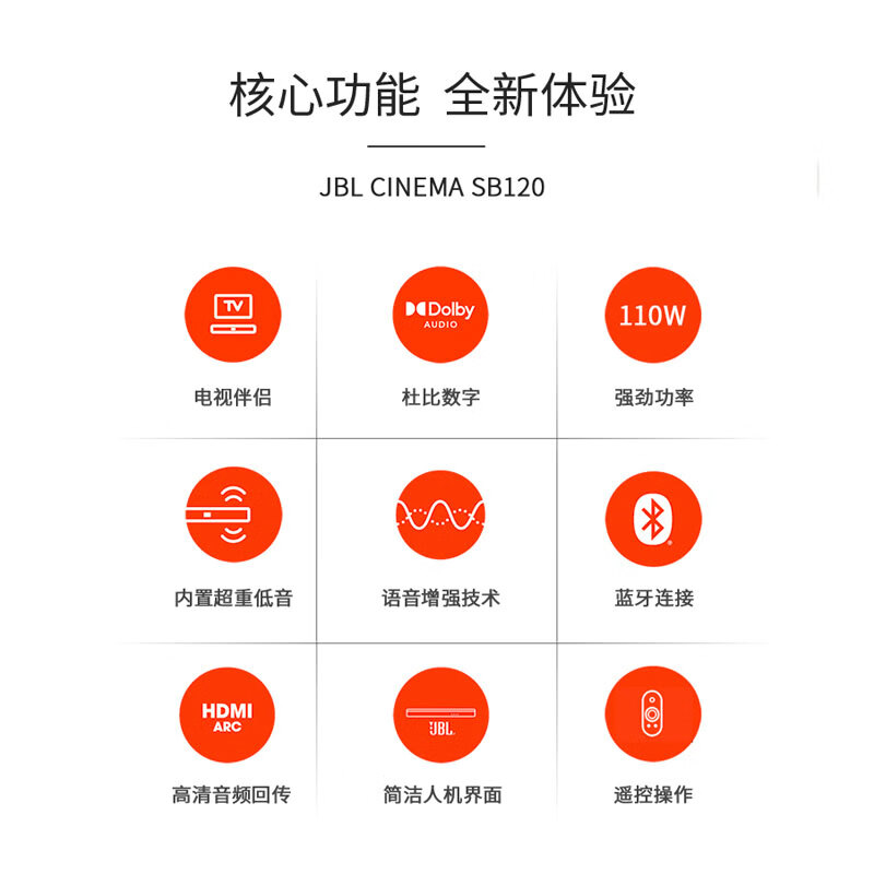 JBL Cinema SB120音响 音箱 家庭影院 电视音响 蓝牙音响 条形音响 回音壁 soundbar价格:998.00元!