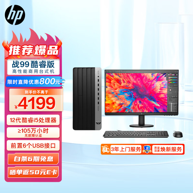 惠普(HP)战99 23款商务办公 教育学习台式电脑主机大机箱(酷睿版12代i5-12500 16G 256G+2T)23.8英寸显示器价格:4199.00元!