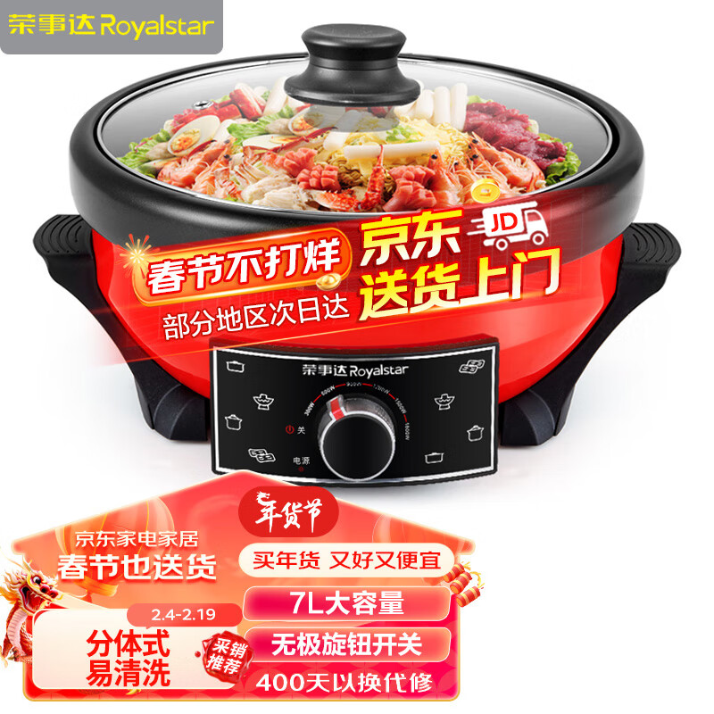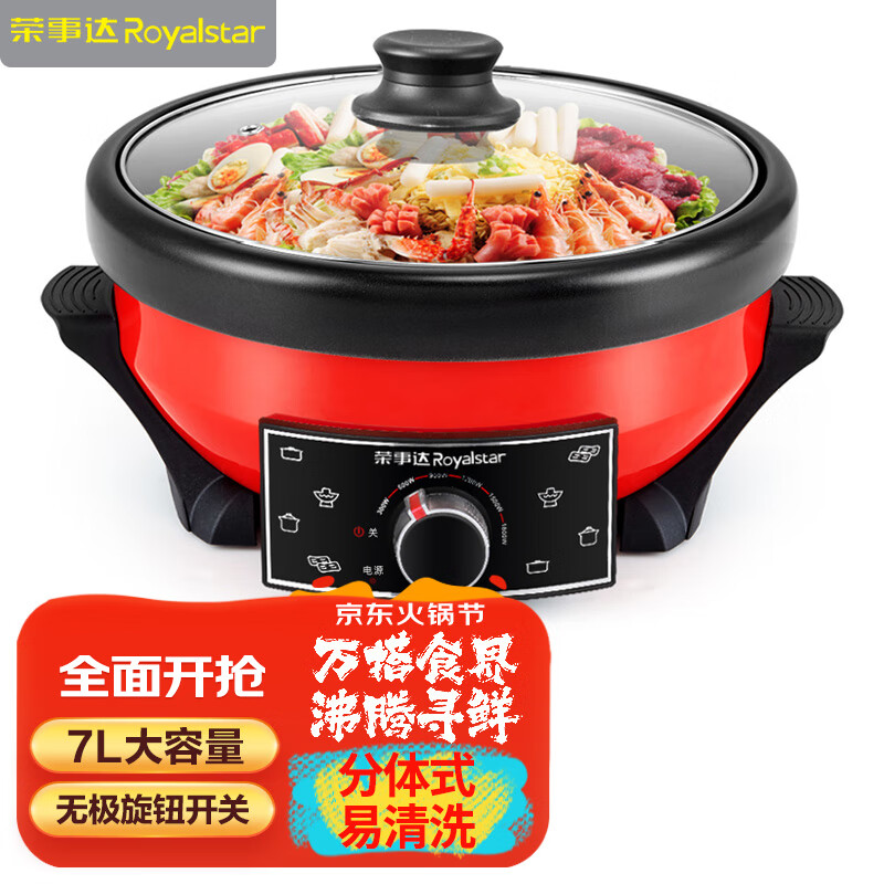 荣事达(Royalstar)电火锅分体式7L大容量多功能电热锅电煮锅电炒锅RHG-70DL价格:219.00元!