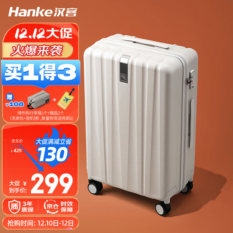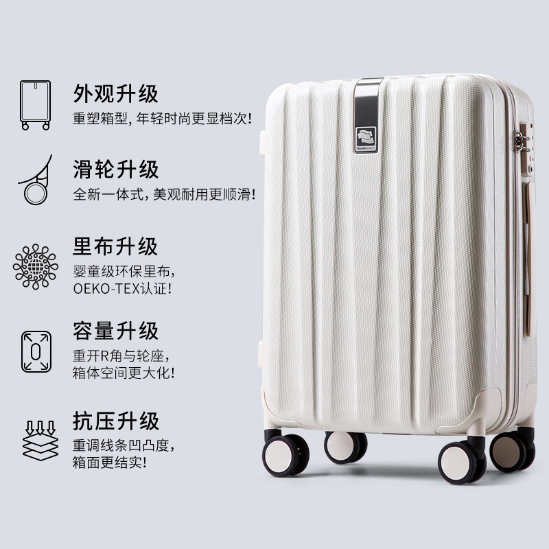 汉客行李箱男拉杆箱女登机旅行箱20英寸象牙白密码箱镇店之宝再次升级价格:429.00元!
