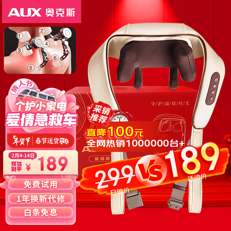 奥克斯(AUX)肩颈 颈椎按摩器 AJA-05D-807按摩披肩 斜方肌腿腰颈部按摩仪颈椎 送女友 男友 节日生日礼物价格:289.00元!